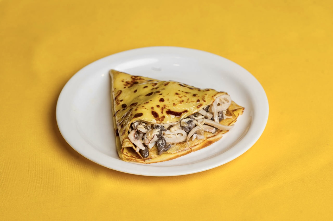 Блин с кальмарами и грибами