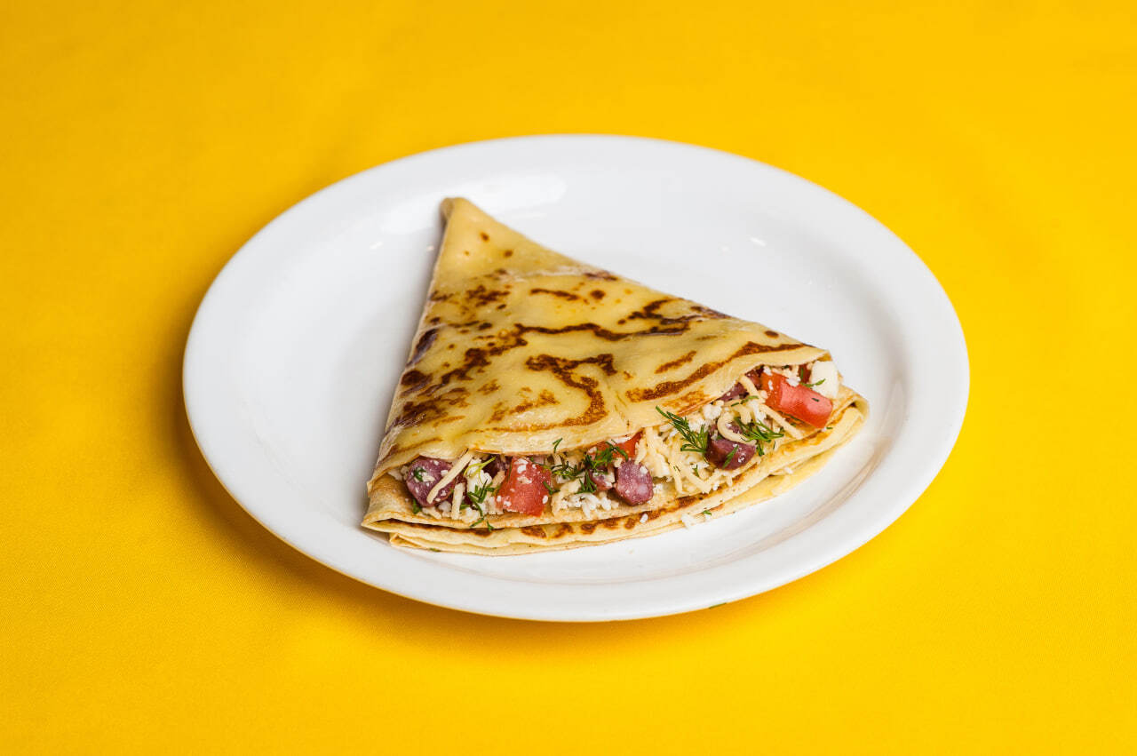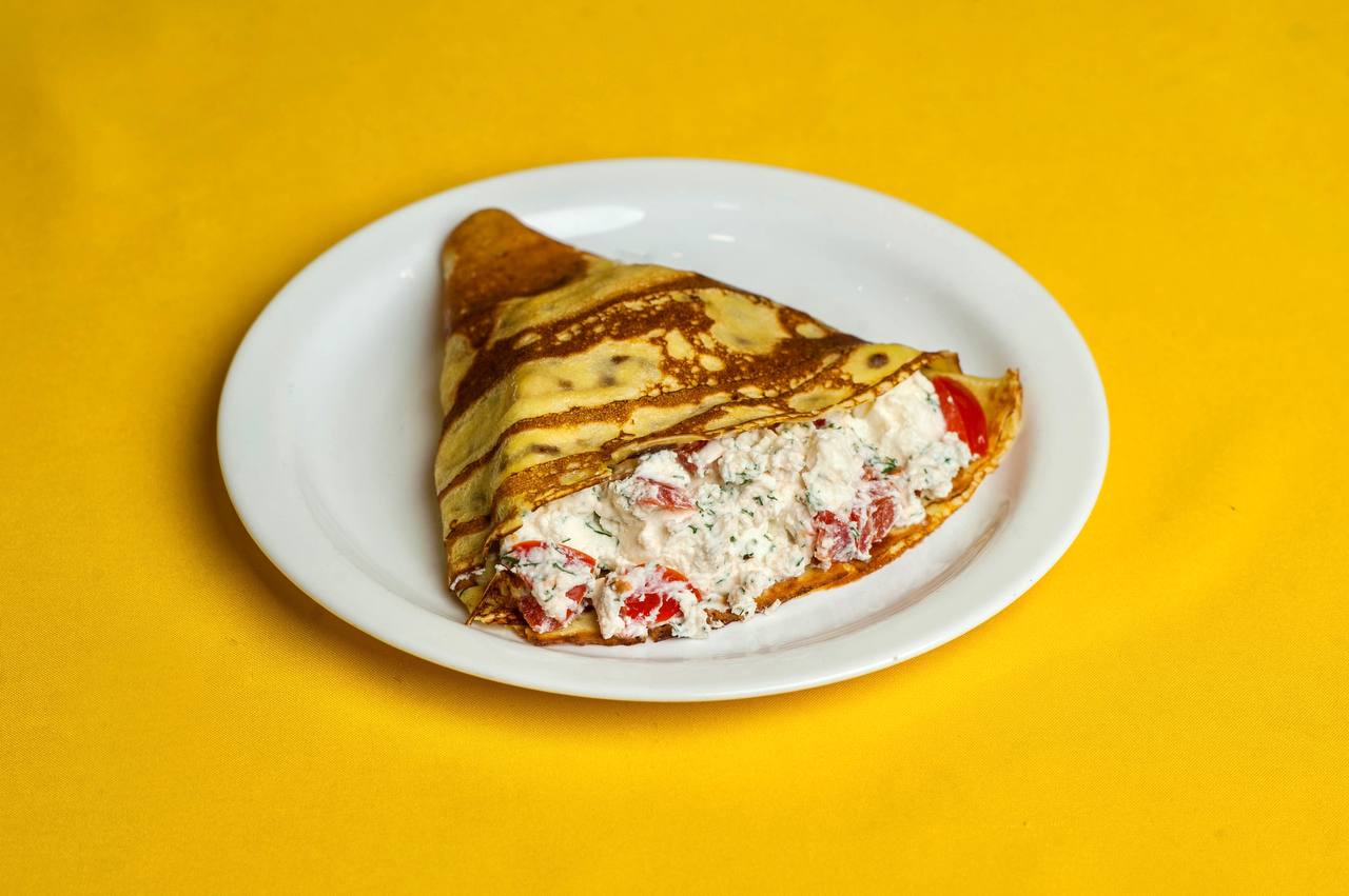 Блин с брынзой и помидорами